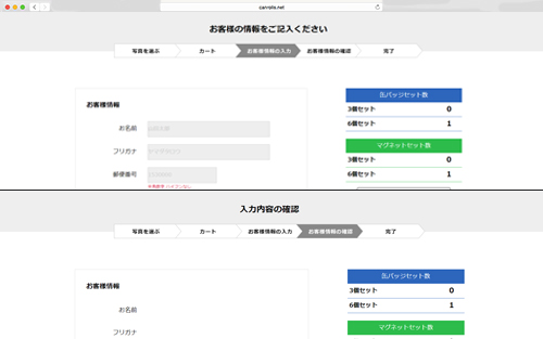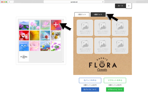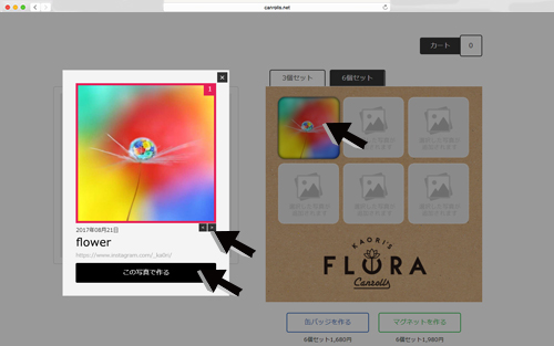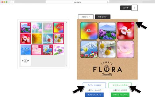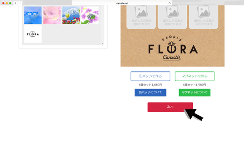 選び終えたら、「缶バッジ」か「マグネット」を選択してください。